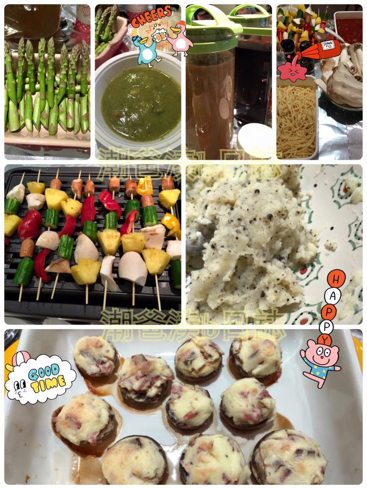 在三個月前,台灣的朋友大家都有假期,潮爸做了一個House warming讓大家聯誼一下。那一次的BBQ實是蠻經典。早兩天已和太太去買菜,跟著太太幫忙弄串燒,而潮爸就弄牛油果沙律,為不失禮朋友們,食物都預備多了,亦準備了奇異果青蘋果汁及羅漢果水,既健康,又好味!大家在BBQ的同時,潮爸就弄拿手的素肉醬意粉、黑松露薯蓉、秘制美國焗磨菇、花花糊(見《BB食譜(1)》但是大人版https://www.facebook.com/babyandpapa/posts/471553813030713