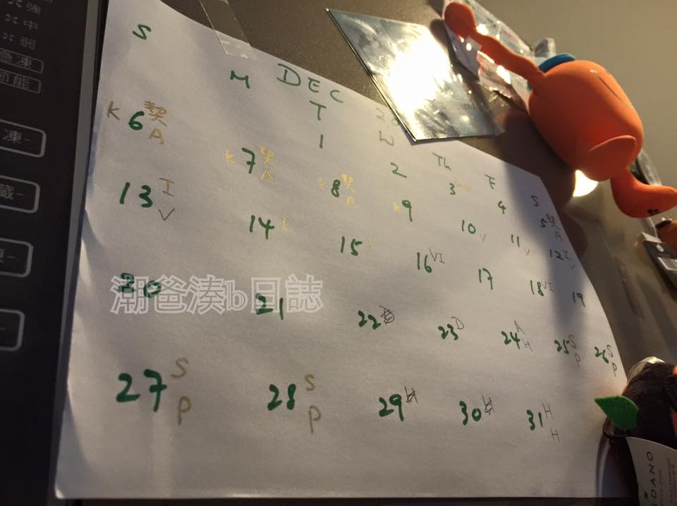 在節日外遊旅行的人特別多,在上個月,潮爸從香港飛回來,就馬上把BB姑媽及朋友來訪的時間表,貼在雪櫃上。早前已跟所有人溝通過,潮爸這「忘憂居」都歡迎大家,像book民宿般跟BB媽咪預先訂好;不介意打擾來台大快朵頤的興致,想吃自家製的無菜單料理並做「白老鼠」的話,就出菜單(潮爸季節限定,每次基本上只serve兩位)。亦在每次有朋友來之前,都跟囡囡「brief」一至兩次,要學習招呼,不可以「扭計」或「隨意哭鬥」。節日做了數次大餐,在Costco買食材就用了$7000+ TWD,但BB姑媽及朋友給予的反饋意見,都感到賓至如歸,BB媽咪及囡囡都很開心。為了慰勞潮爸,節日過後的一星期,都外出用膳,順便休息一下。
