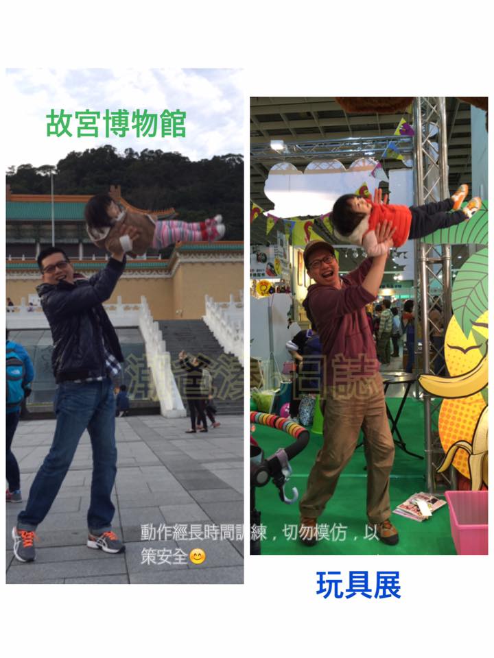 景點之中的首選當然是台北最著名的「故宮博物館」。去參觀古時或近代歷史文物,嫲嫲非常喜歡。入場前,原來在BB袋內囡囡飲用的水也不能帶進去,要在旁記名存放。囡囡入場後沒水喝,而且整個水瓶放在外,其實真有些擔心,不過也沒辦法。在館內回顧嫲嫲出世的年代,建築、陶藝、服飾、書畫等,有著熟悉的東西,嫲嫲在內不停細說當年... 很快便過了兩小時,嫲嫲都有點倦意,拿回水瓶,幸好太陽還未下山,故宮博物館外涼風送爽,便出去拍拍照。而且在館內因為人多,太太要全程抱著囡囡,囡囡亦可以在外面跑個痛快,並玩飛簷走壁,看得嫲嫲十分開心!