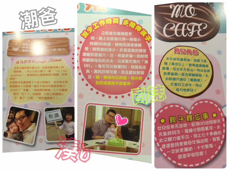 太太放完產假後,潮爸就當全職「湊仔公」。猶豫了很久請不請姐姐,但太太很不放心。最終潮爸一至五湊,太太星期六日「獨霸囡」,分工合作,同心協力湊掂囡囡!亦在Facebook撰寫了《潮爸湊b日誌》,分享湊b經歷,希望更多爸爸加入湊B行列。